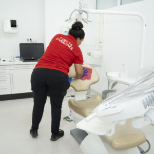 Además, ofrecemos un servicio especializado en la limpieza de clínicas dentales, asegurando la máxima higiene en todas las áreas, desde las salas de espera hasta las salas de tratamiento, gracias a la utilización de productos y técnicas específicas para la desinfección de equipos y superficies, cumpliendo con los más altos estándares de limpieza e higienización.